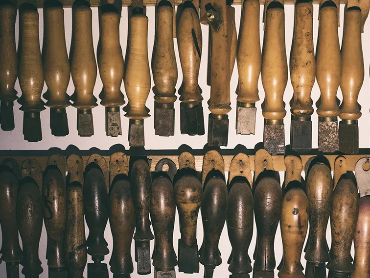 C'est ici, au cœur de cette atmosphère, que nous créons des souliers patiemment, sublimés par des patines sur mesure, pour les élégantes et les élégants qui d’un bon pas s’aventurent.