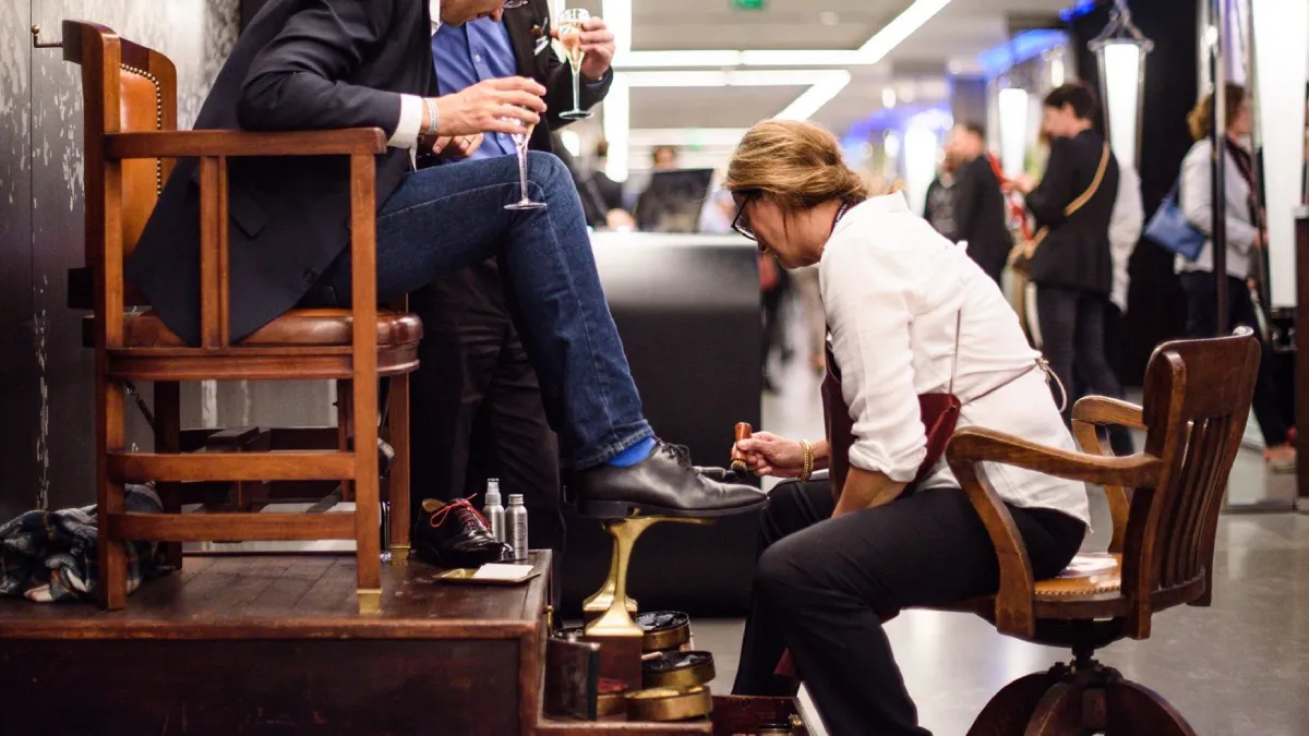 Véritable ADN de notre Maison, notre service de cireur ramène une touche d'élégance et de tradition dans un monde où la rapidité prime souvent sur la qualité. Chaque session sur notre chaise est une expérience raffinée, où les chaussures sont traitées avec le plus grand soin par notre savoir-faire artisanal. C'est une belle invitation à ralentir, à apprécier les petites choses et à redécouvrir l'art du soin des chaussures.