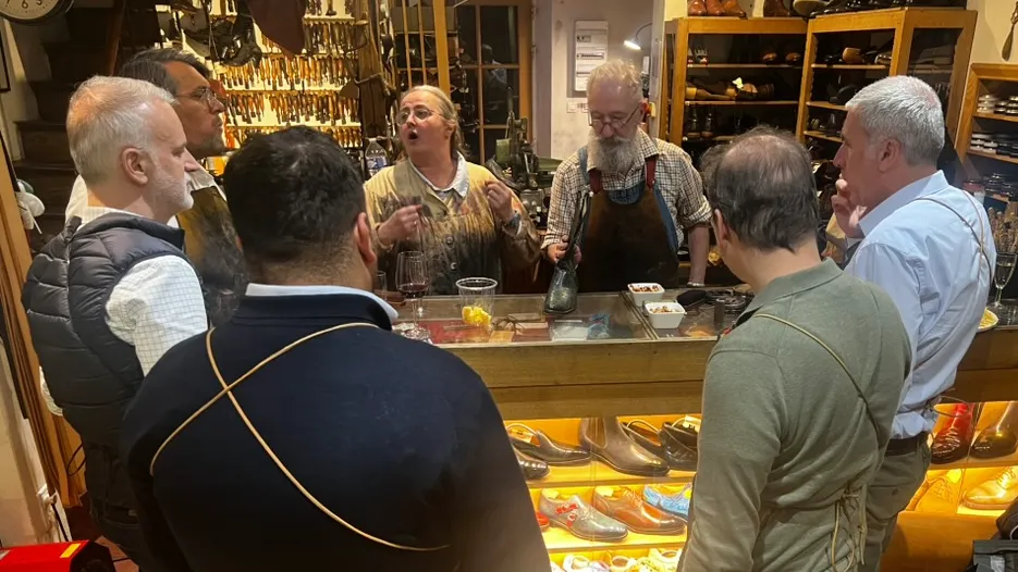 George & Georges vous ouvre ses portes pour une immersion totale dans l'art du cirage. Que ce soit pour fédérer vos équipes ou remercier vos clients, rejoignez-nous pour une expérience enrichissante où vous apprendrez nos techniques ancestrales, guidés par des experts passionnés. Profitez de démonstrations pratiques, de conseils personnalisés et de discussions animées autour de l'amour du bel ouvrage, le tout dans une atmosphère conviviale et raffinée.